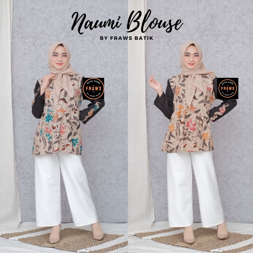 Name: [bisa Cod] Naumio Blouse Batik Wanita Kekinian Blouse Batik Brokat Batik Kombinasi