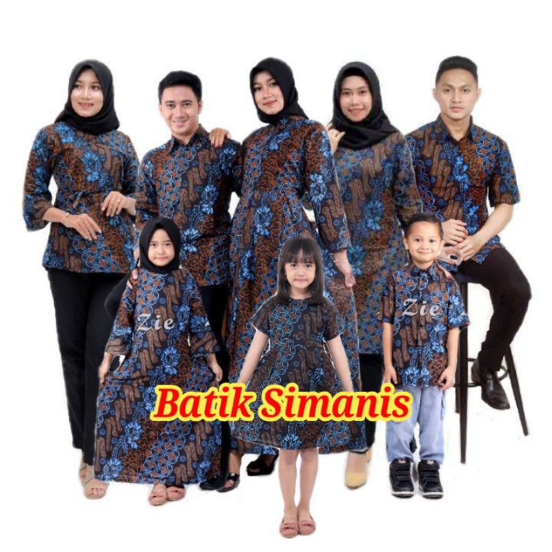 Grosir Pakaian W di Kabupaten Halmahera Selatan Batik Couple Keluarga Sania Ruffle Ori Ndoro Jowi Dnt Motif Seno Biru dari Batik Simanis Kota Pekalongan