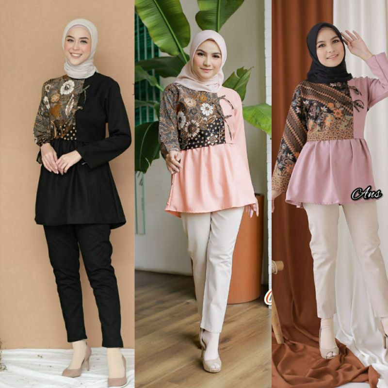 Name: Atasan Blouse Batik Wanita Modern Fashion Wanita Kekinian Brokat Batik Kombinasi Ruby And Arsyla