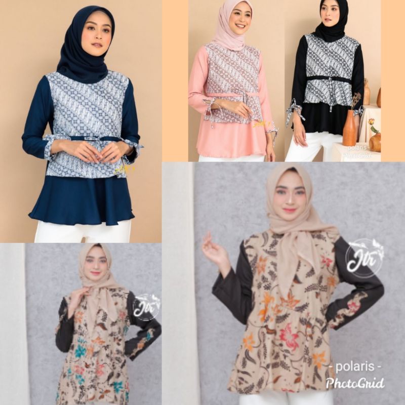 Name: Ori Atasan Blus Batik Wanita Modern Halus Dolby Kombinasi Brokat Polos